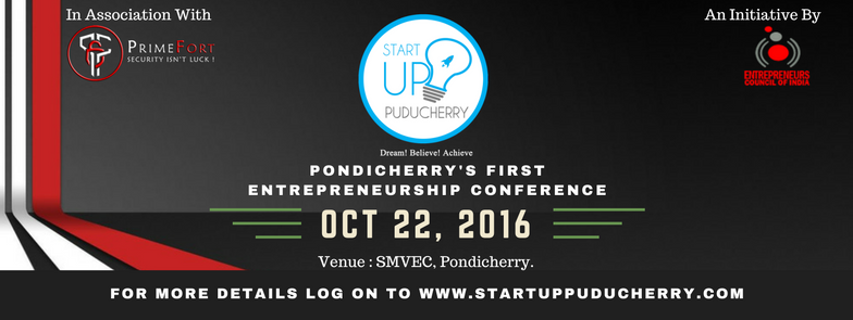 Startup Puducherry is an one day event based on Entrepreneurship. Startup Puducherry is an Iniative by Entrepreneurs Council of India Pondicherry Chapter. In Association with Primefort India Pvt Ltd and this is basically for the budding entrepreneurs and college students. The event is open for all!