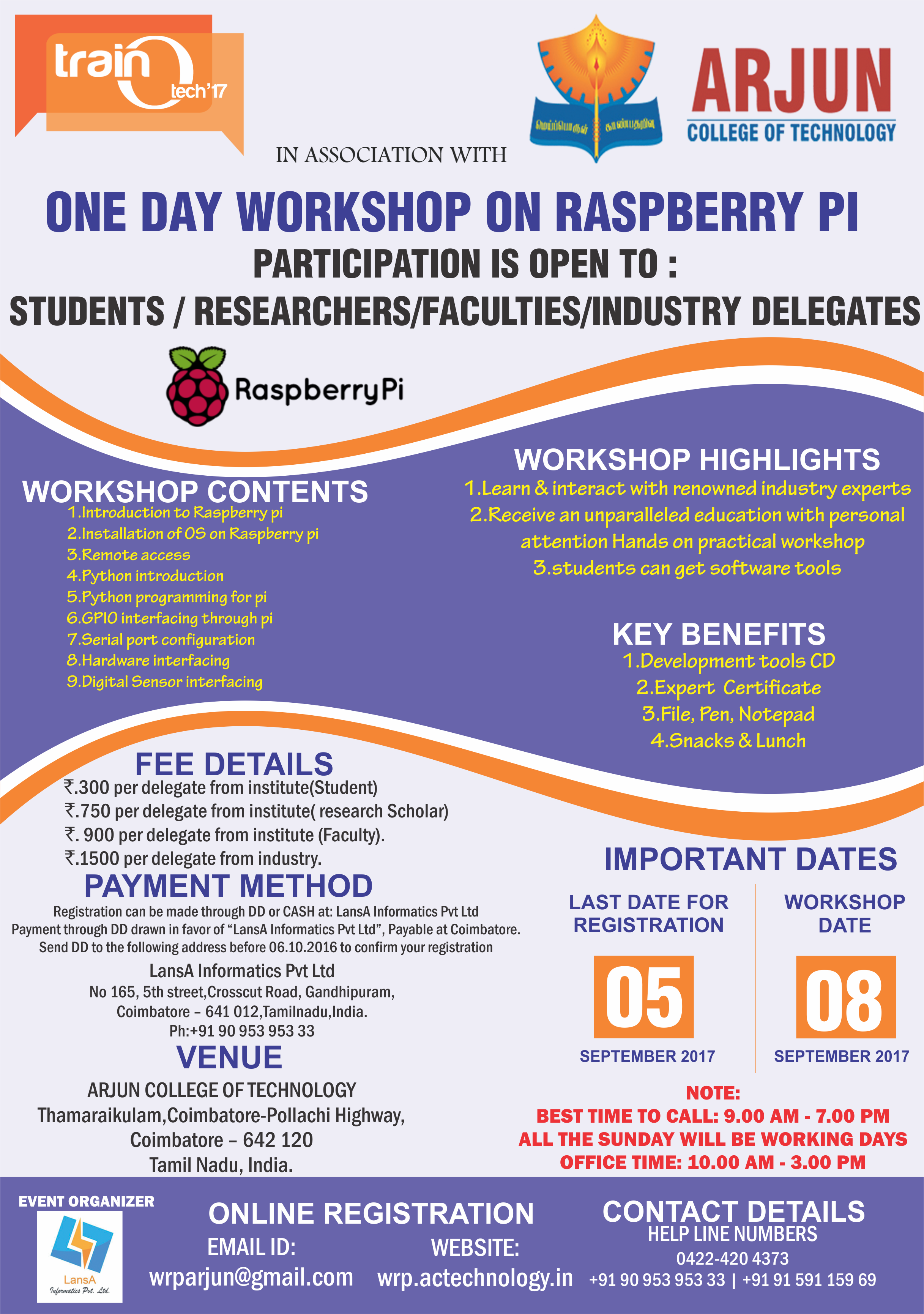 Payment through DD drawn in favor of “LansA Informatics Pvt Ltd”, Payable at Coimbatore.