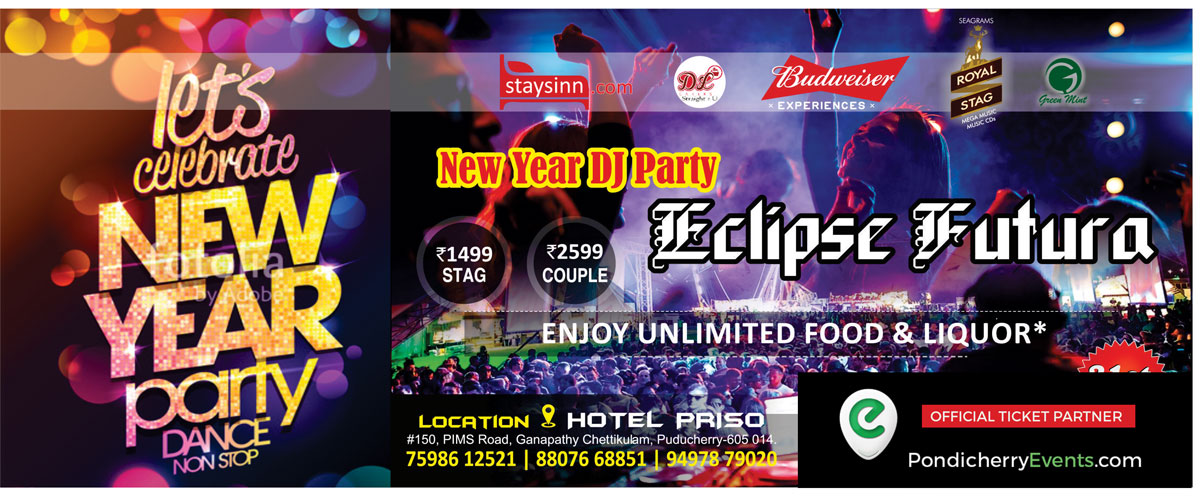 - Welcome this new year with lots of fun, Dance & Masti moments with Eclipse futura, New year DJ party organised by Green Mint Events.
