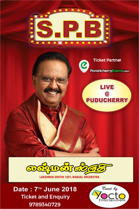 Guinness World Record holder for the recording the highest number of songs in Indian Cinema singer Dr. S.P.BALASUBRAMANYAM comes to Pondicherry.