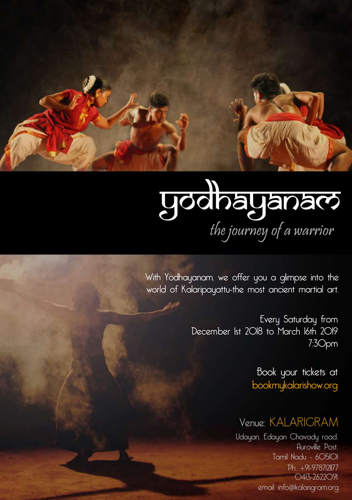 Yodhayanam - Journey of a warrior is a Kalaripayattu show that tells the story of the brave Unniyarcha. The performance showcases the oldest martial arts of the world in a stor format.