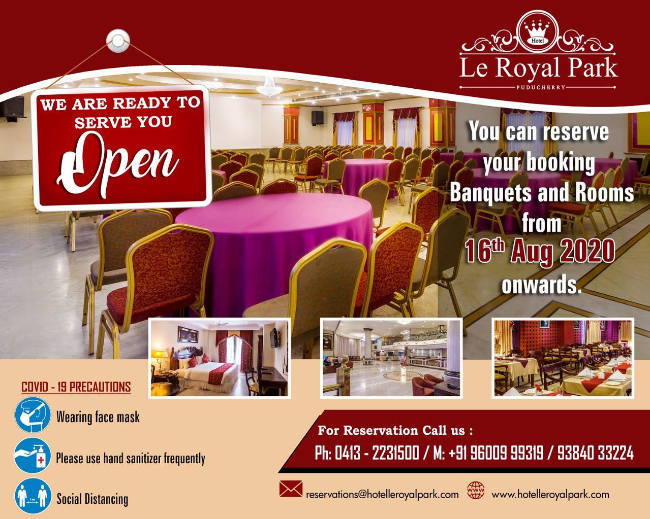 You can reserve your booking Banquets and Rooms from 16th Aug 2020 onward